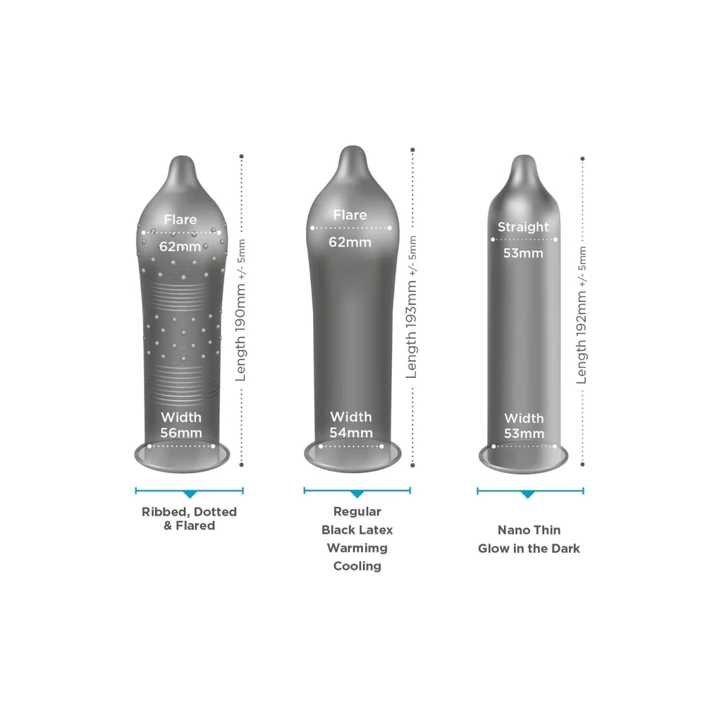 Variety Pack 2 contains 42 condoms in the following varieties:
