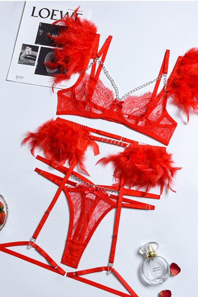 Σέξι Σετ με Πούπουλα Κόκκινο