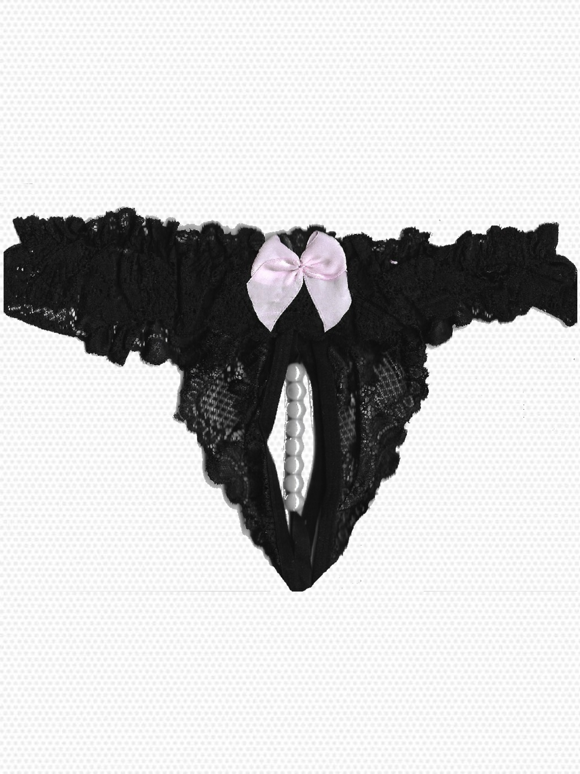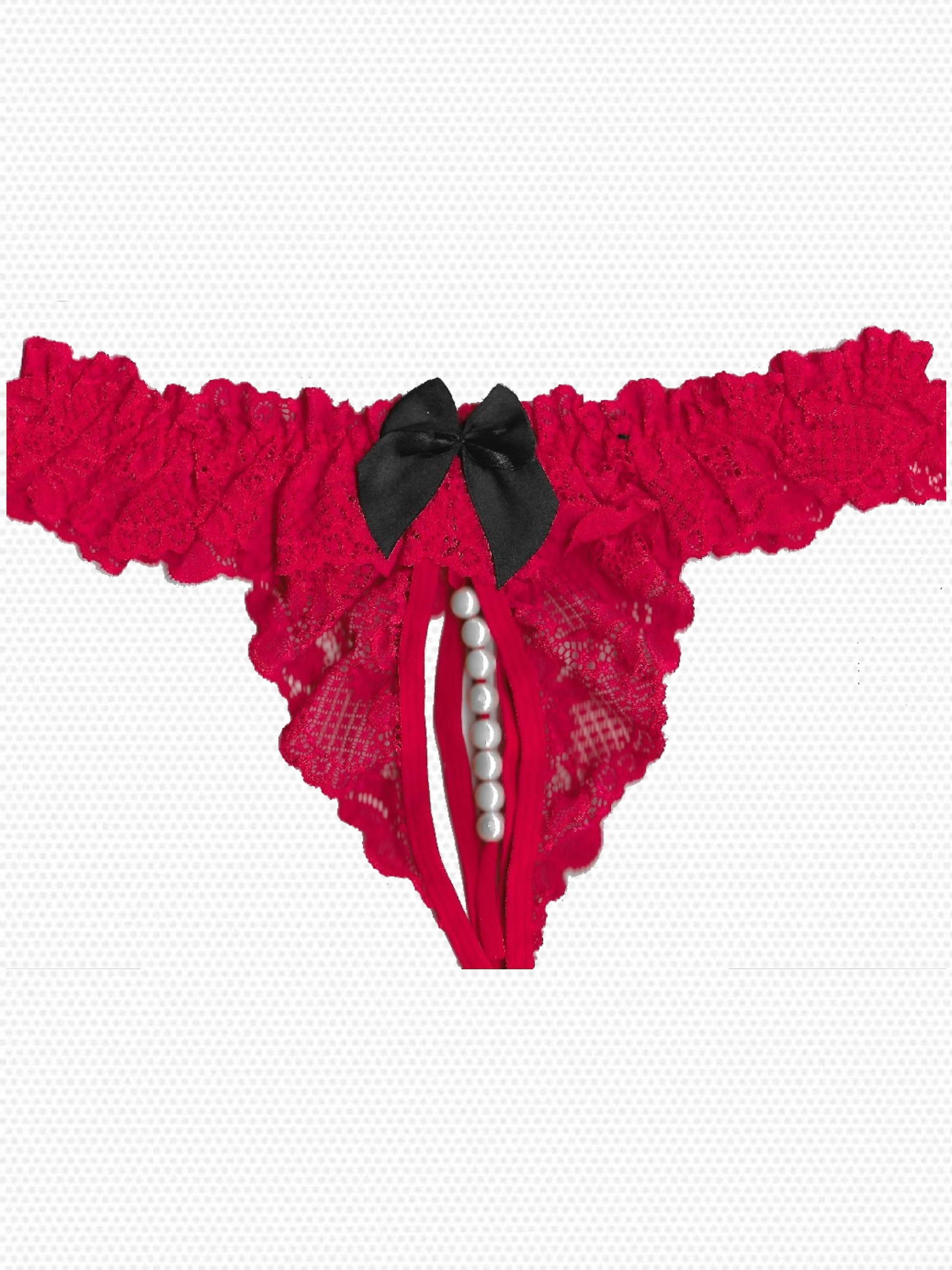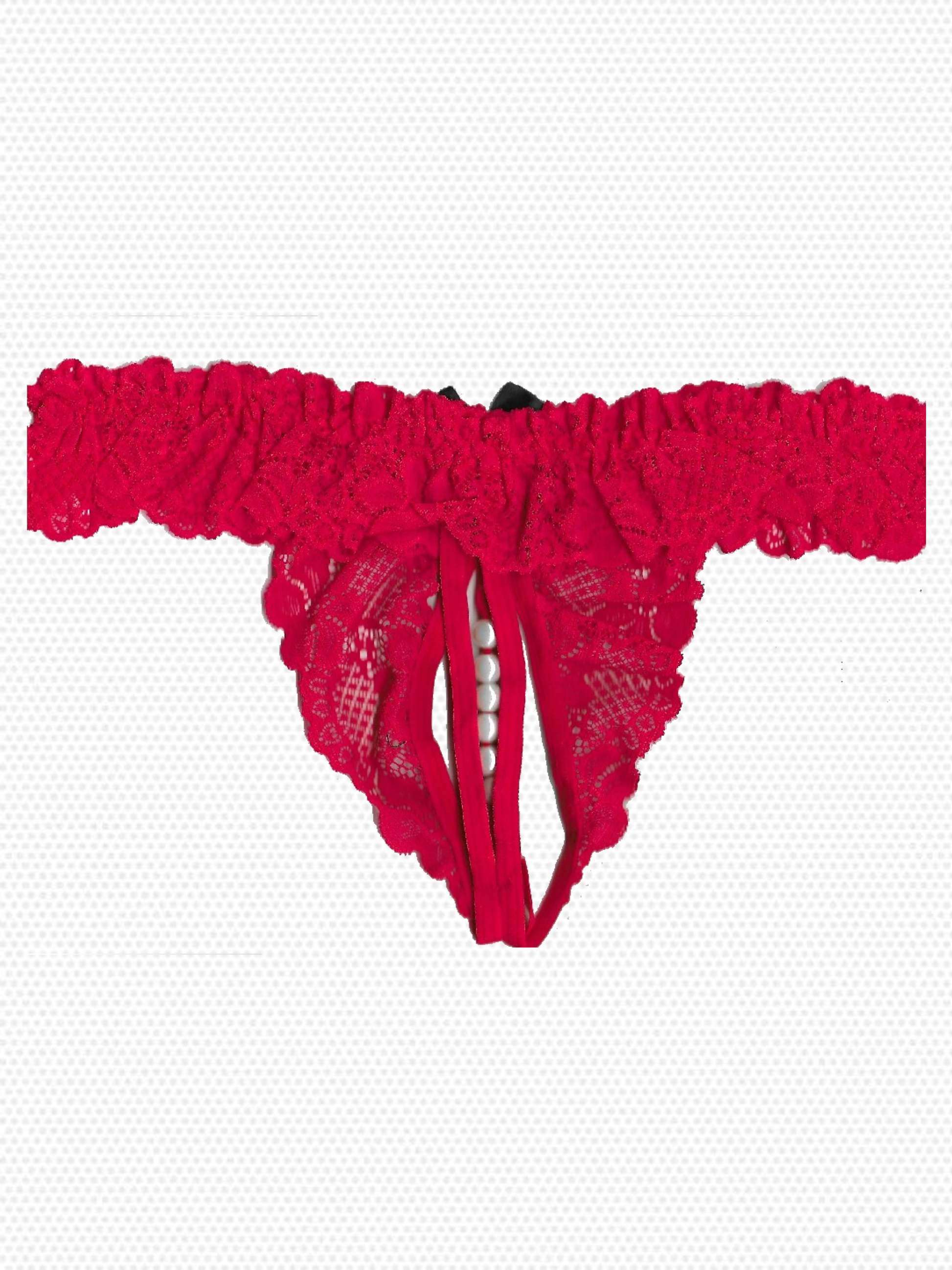 Δαντελωτό στρινγκ με ανοιχτό καβάλο και πέρλες στη μπροστινή μεριά για μοναδική αίσθηση και αισθητική. Διαθέτει πλούσια δαντέλα και φιόγκο με αντίθεση.